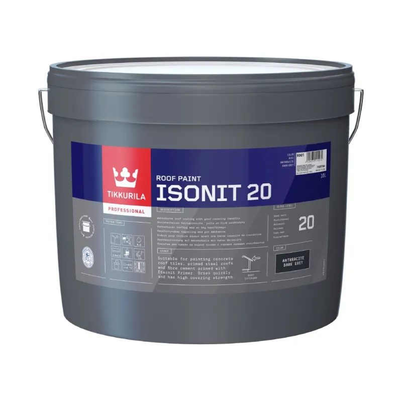 Isonit er en vandfortyndbar tagmaling med høj dækkeevne. Malingen tørrer hurtigt, er åndbar (diffusionsåben) og har en vandskyende overflade. God dække- og sammenflydningsevne. Fremragende vedhæftning. Lysægte og vejrstabil. Fås i både fabrikstonede farver samt tonbare baser.